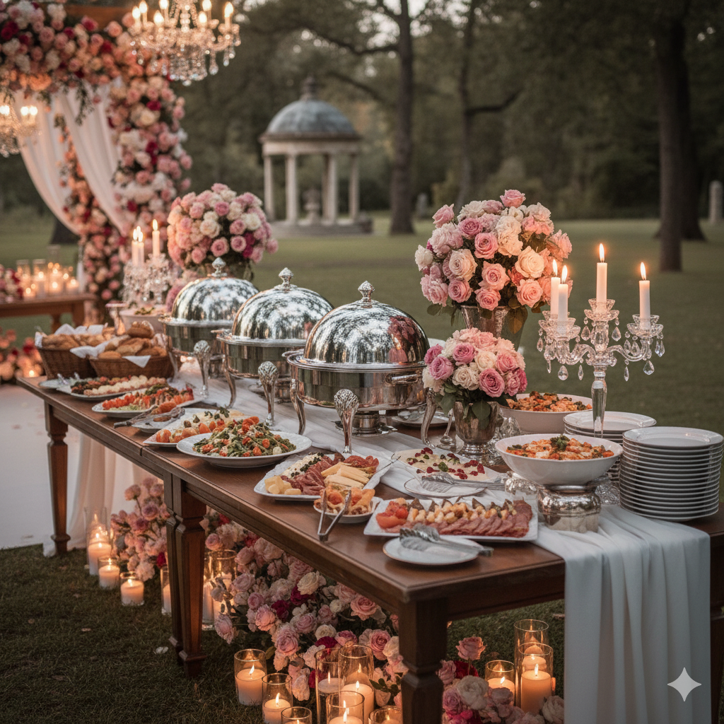 Kami siap membantu Anda mewujudkan momen pernikahan impian dengan layanan terbaik, dekorasi elegan, serta sajian yang berkesan. Percayakan hari istimewa Anda kepada kami.