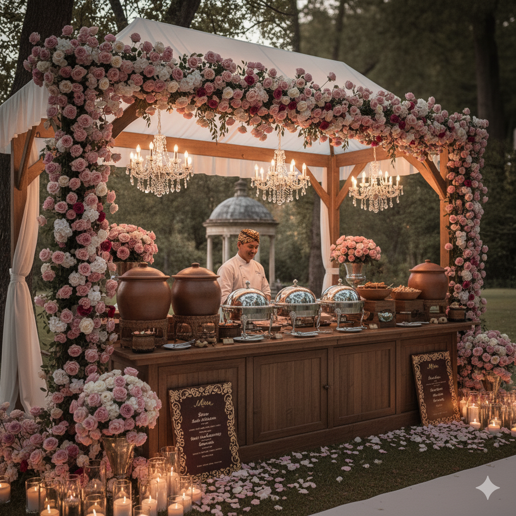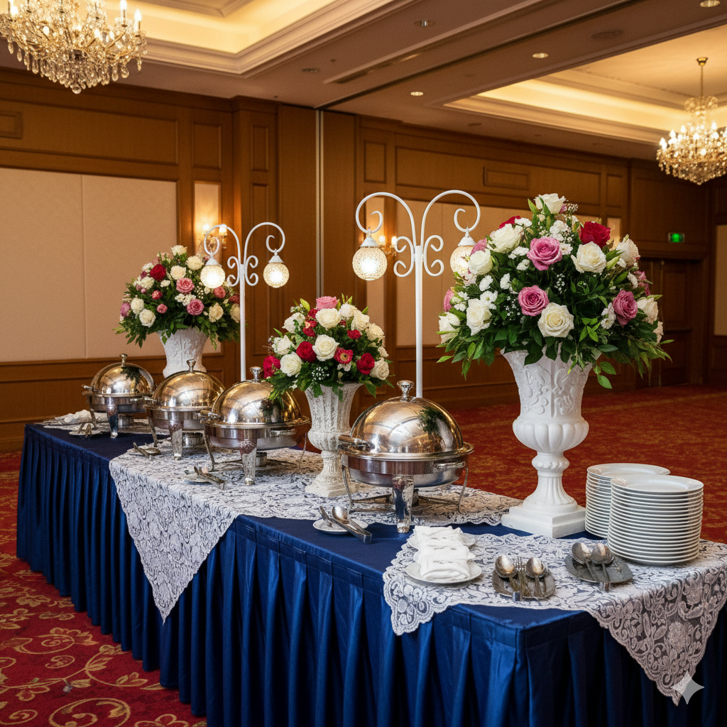 Kami siap membantu Anda mewujudkan momen pernikahan impian dengan layanan terbaik, dekorasi elegan, serta sajian yang berkesan. Percayakan hari istimewa Anda kepada kami.
